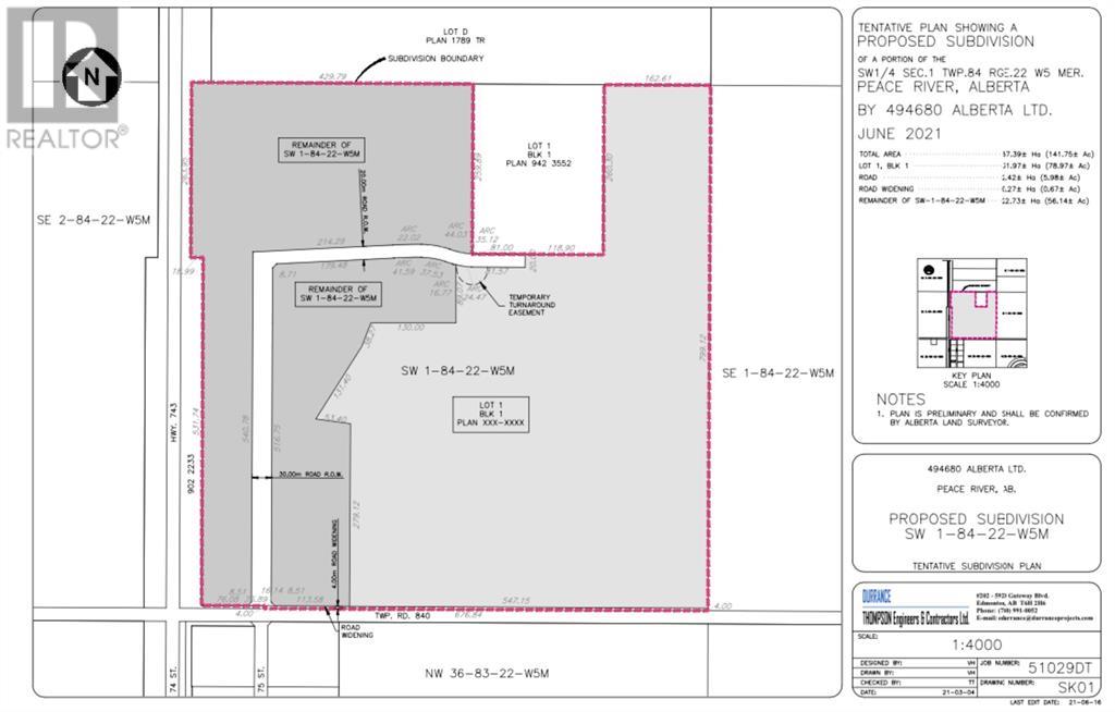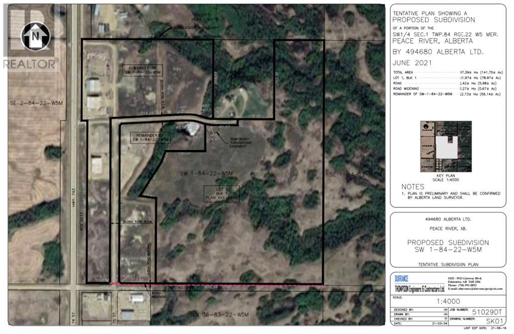 ENDLESS OPPORTUNITIES!!!! This 78 Acre Parcel is up for grabs, overlooking the town of Peace River and its beautiful valley! Perfect location to build the home of your dreams! This parcel also has a structure plan to be developed into 85 low-density residential lots! Offer must be pending Developers subdividing of the subject property. (id:7303)